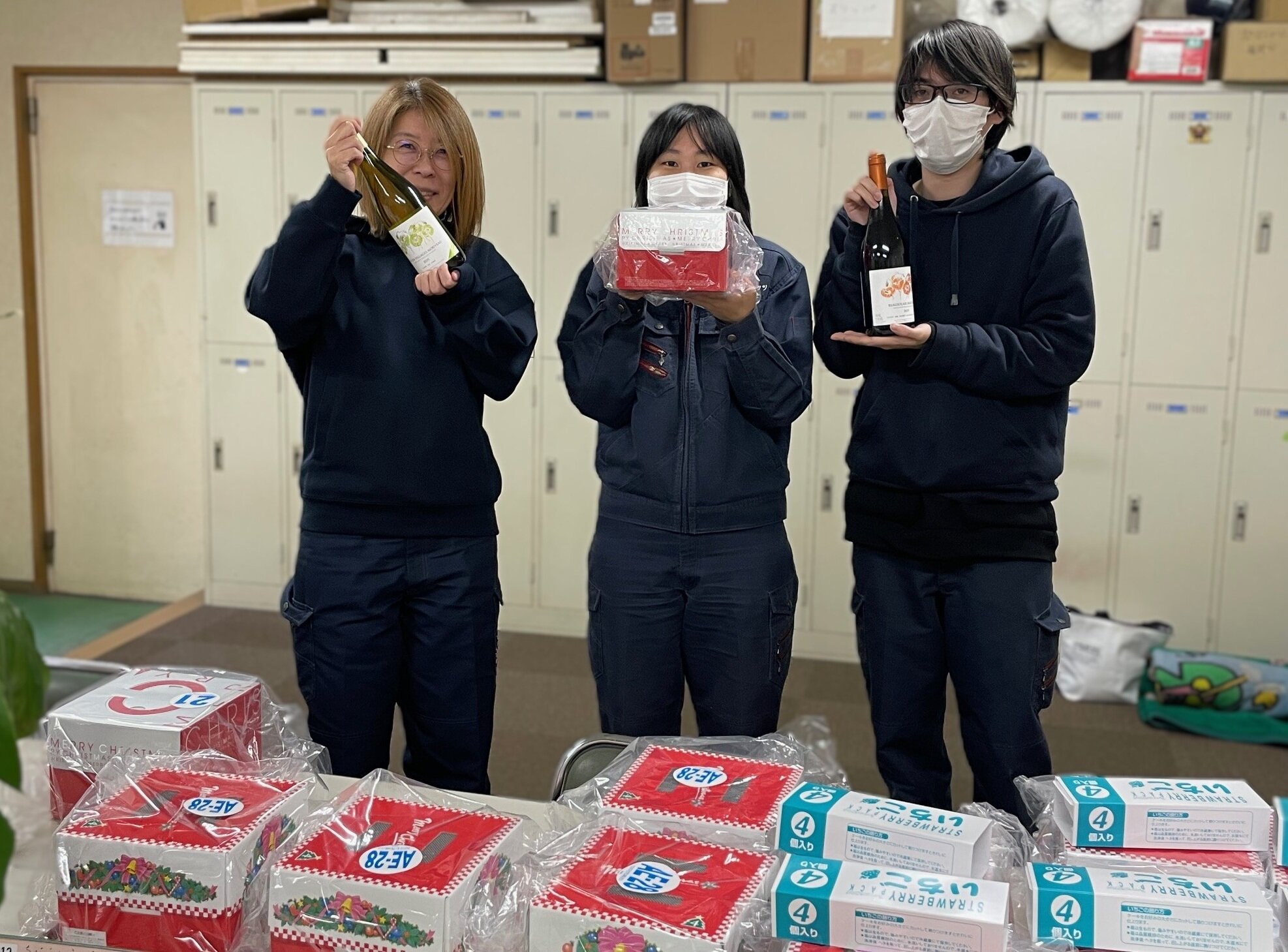 今年も社長より、社員全員にクリスマスケーキとワインのプレゼントをいただきました。